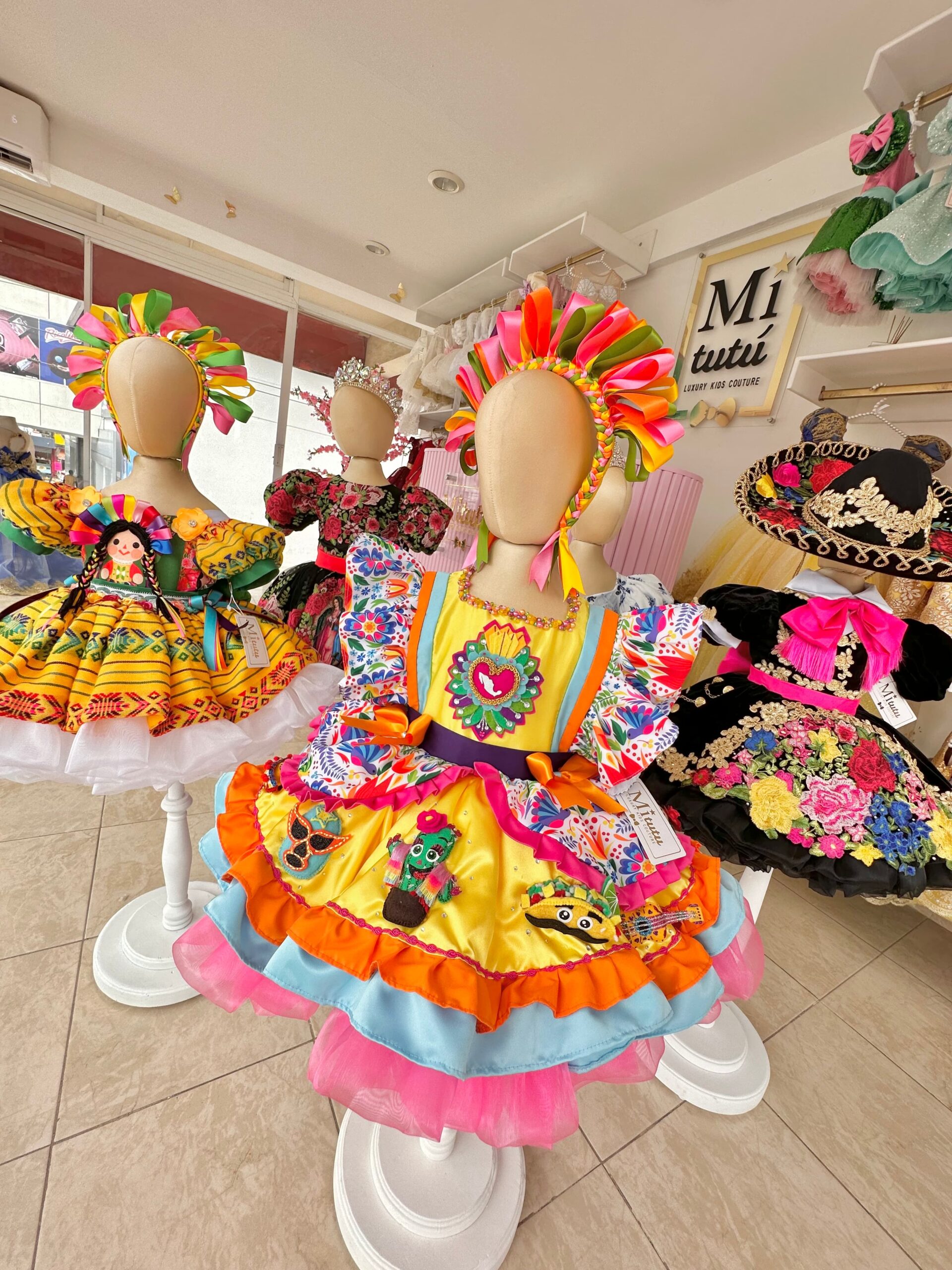 Déjate envolver por el vestido “Alegría Mexicana”, un festín visual de colores hermosos y detalles confeccionados a mano. Este atuendo, disponible en modelo corto o largo, es una danza vibrante de esponjosidad y elegancia que celebra la rica paleta de la cultura mexicana. Este modelito encapsula la alegría y la vitalidad de México. Este vestido es más que moda; es una expresión radiante de la belleza y la tradición que ilumina cualquier ocasión con su encanto cautivador.