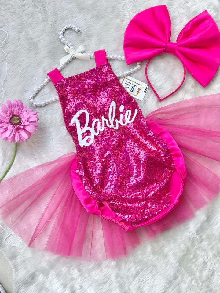 Este adorable romper Barbie, modelito de una solo pieza. Cada detalle está confeccionado con amor y destreza, realzando la belleza del vestido con bordados a mano que añaden un toque único y encantador. ¡El romper perfecto para una fiesta inolvidable! No incluye accesorio.