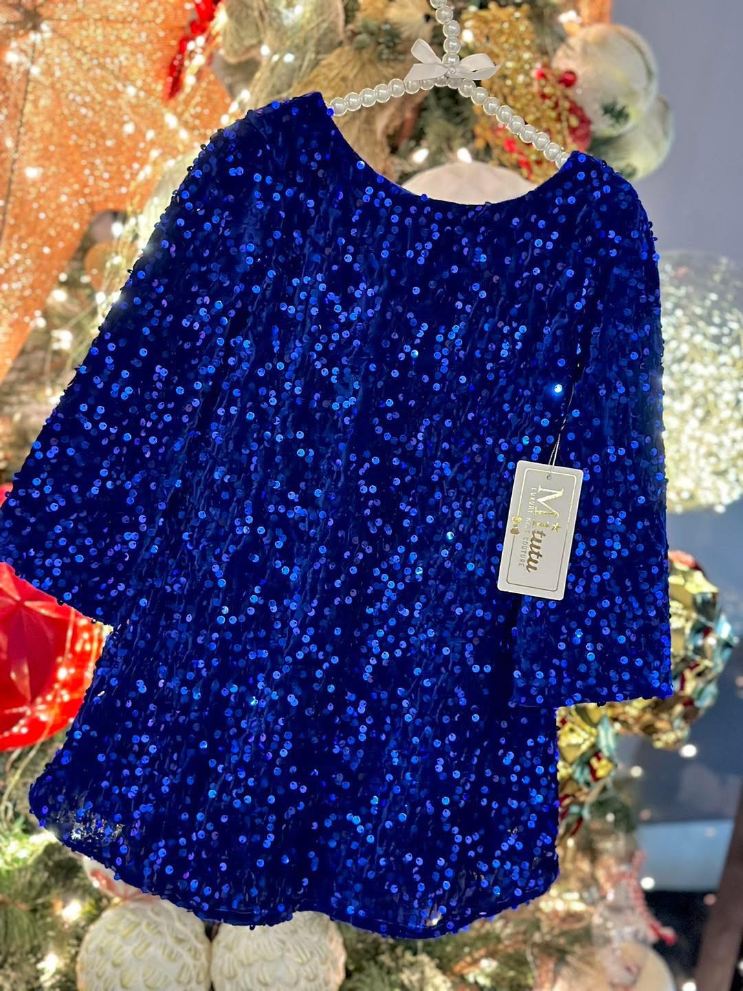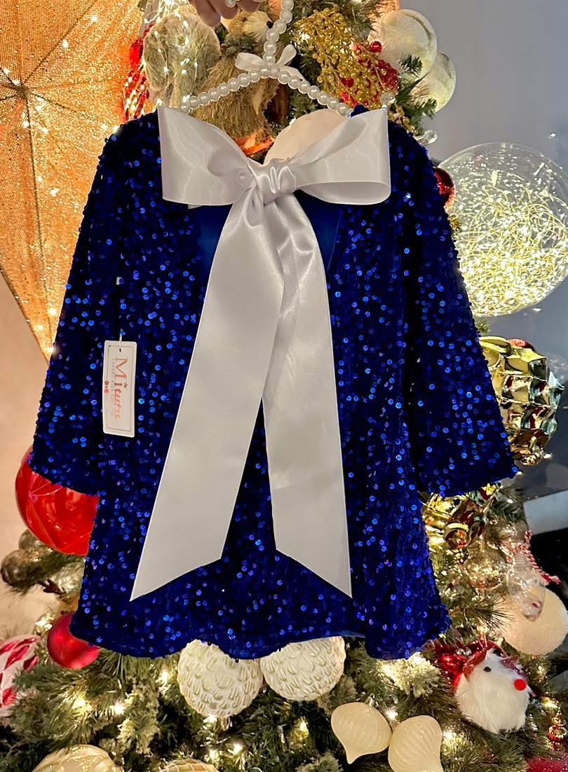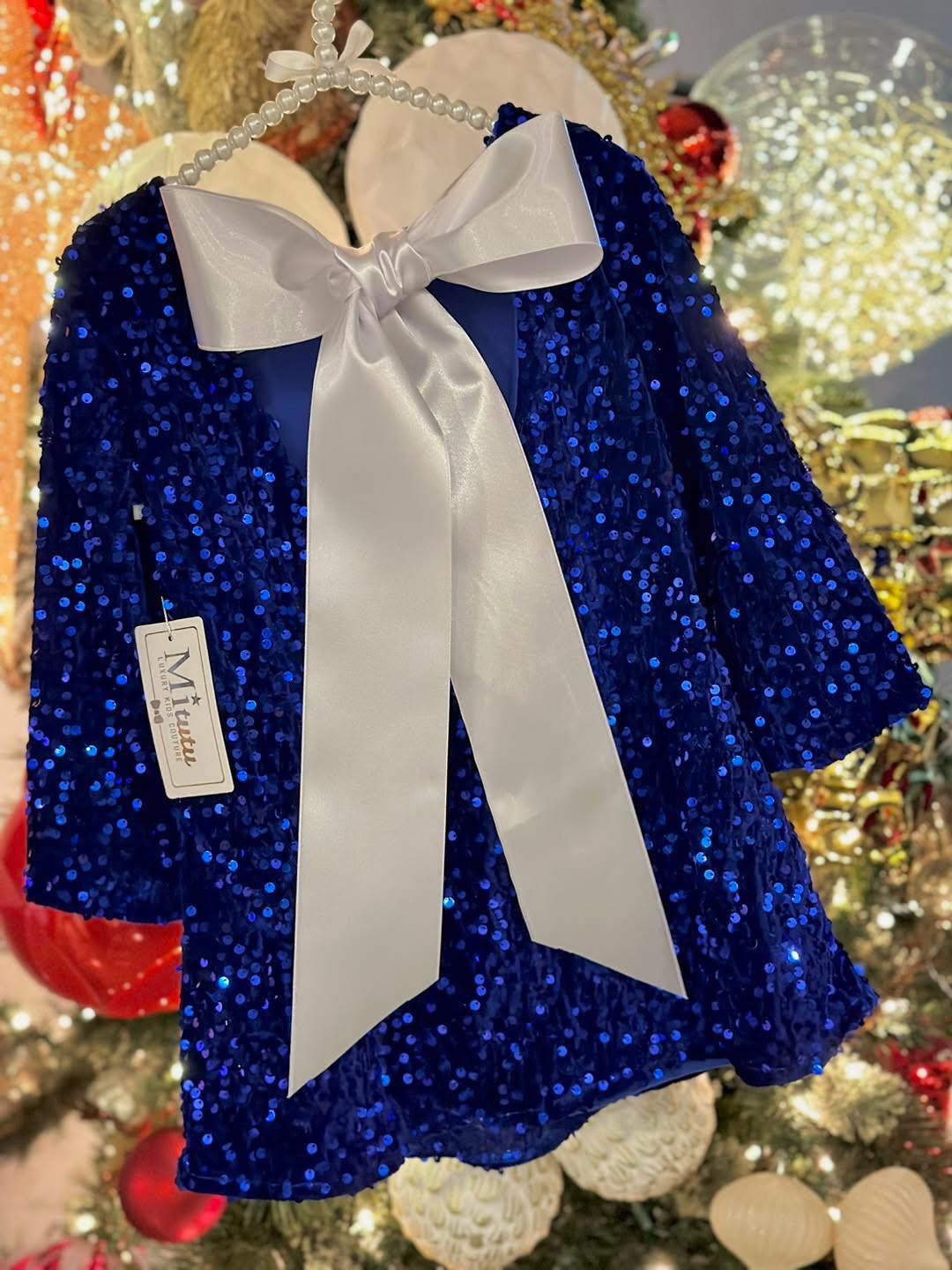 Encantadora batita infantil de ensueño, diseñada para brillar en cada momento especial. Su tono azul radiante evoca la magia del cielo estrellado, mientras que su corte corto a la rodilla le otorga un aire delicado y juguetón.
