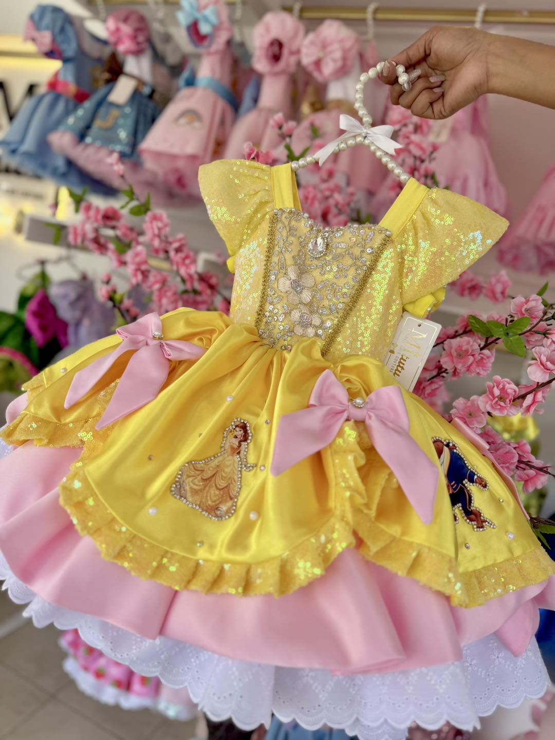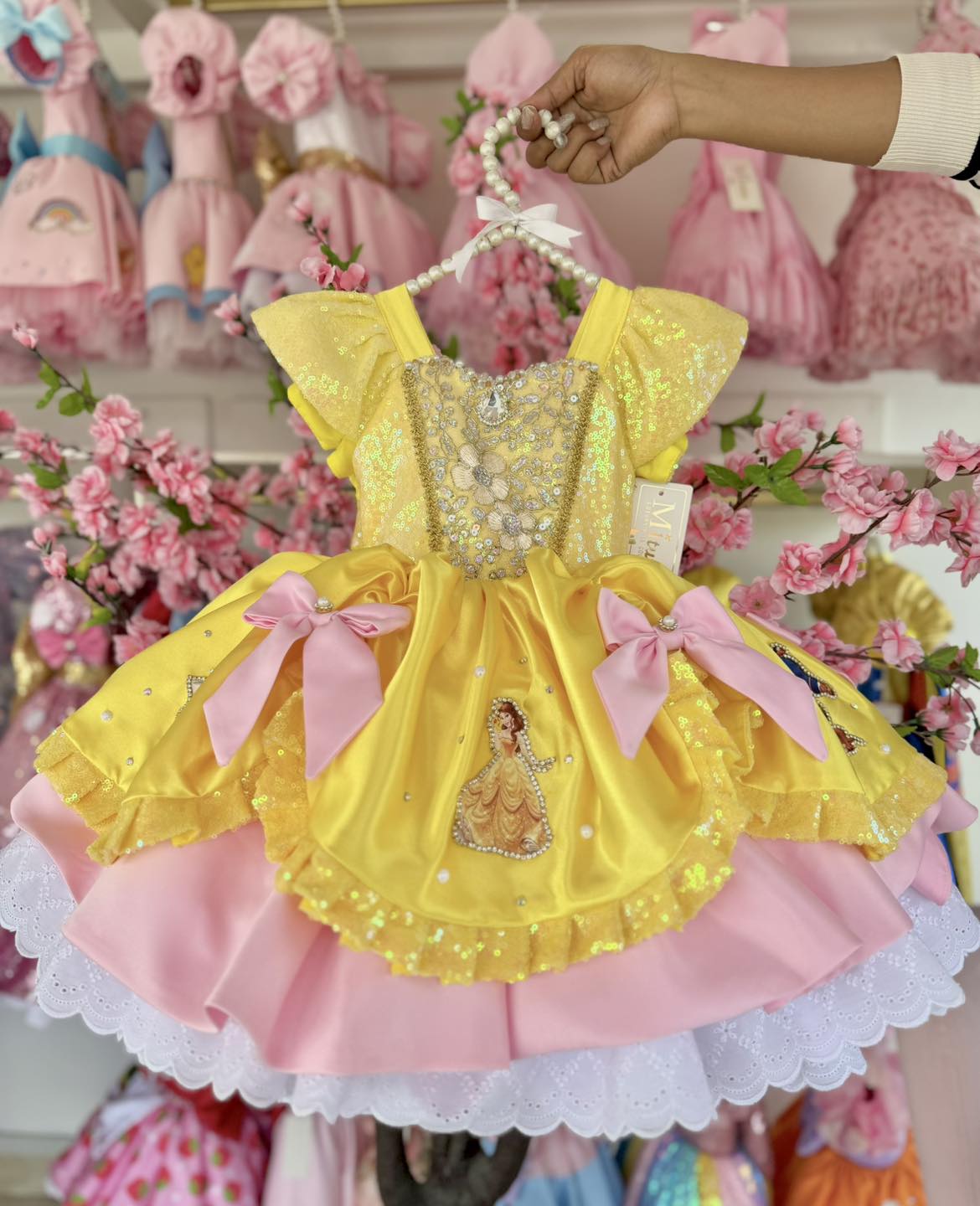 Hermoso vestidito inspirado en Bella. ¡Viste a tu pequeña princesa como la más dulce de todas con nuestro encantador vestido inspirado en Bella! Con su diseño corto a la rodilla con colita y su esponjoso vuelo, ¡hará que todos se sientan como en un cuento de hadas! ✨Nuestro vestido inspirado en Bella es el Ideal para ocasiones especiales cumpleaños y sesión de fotos.