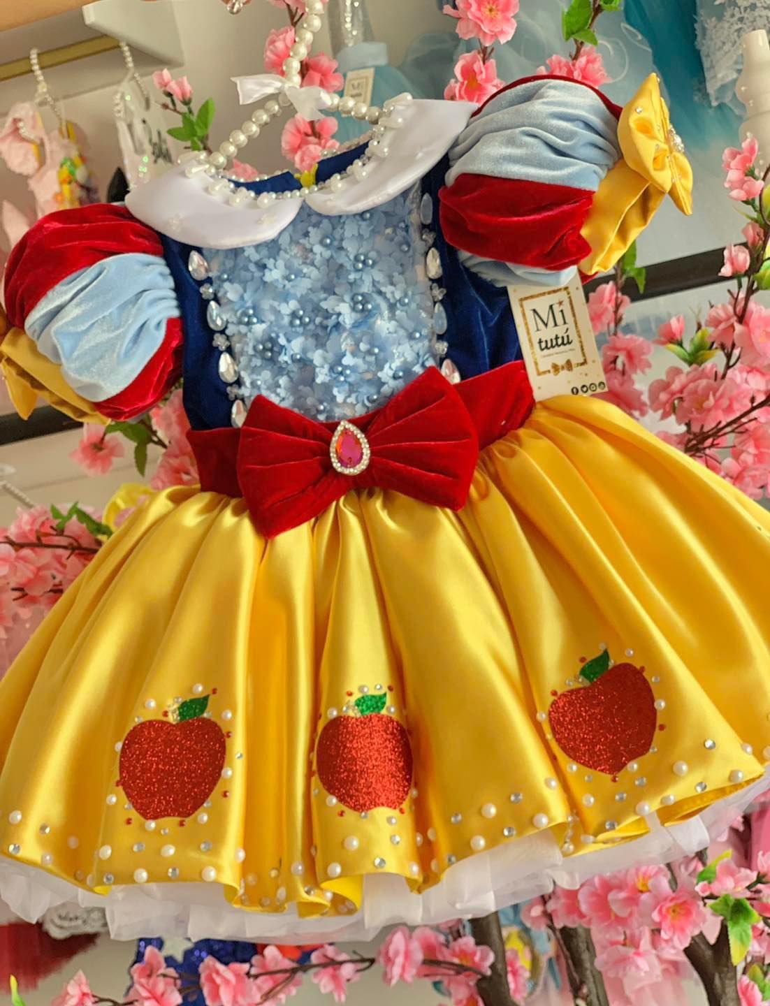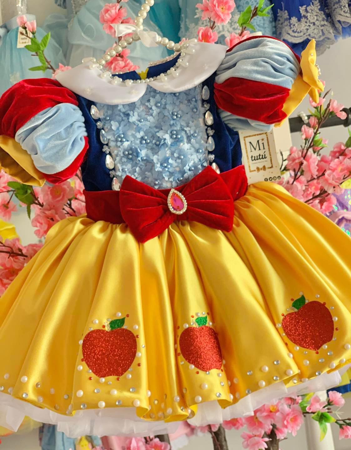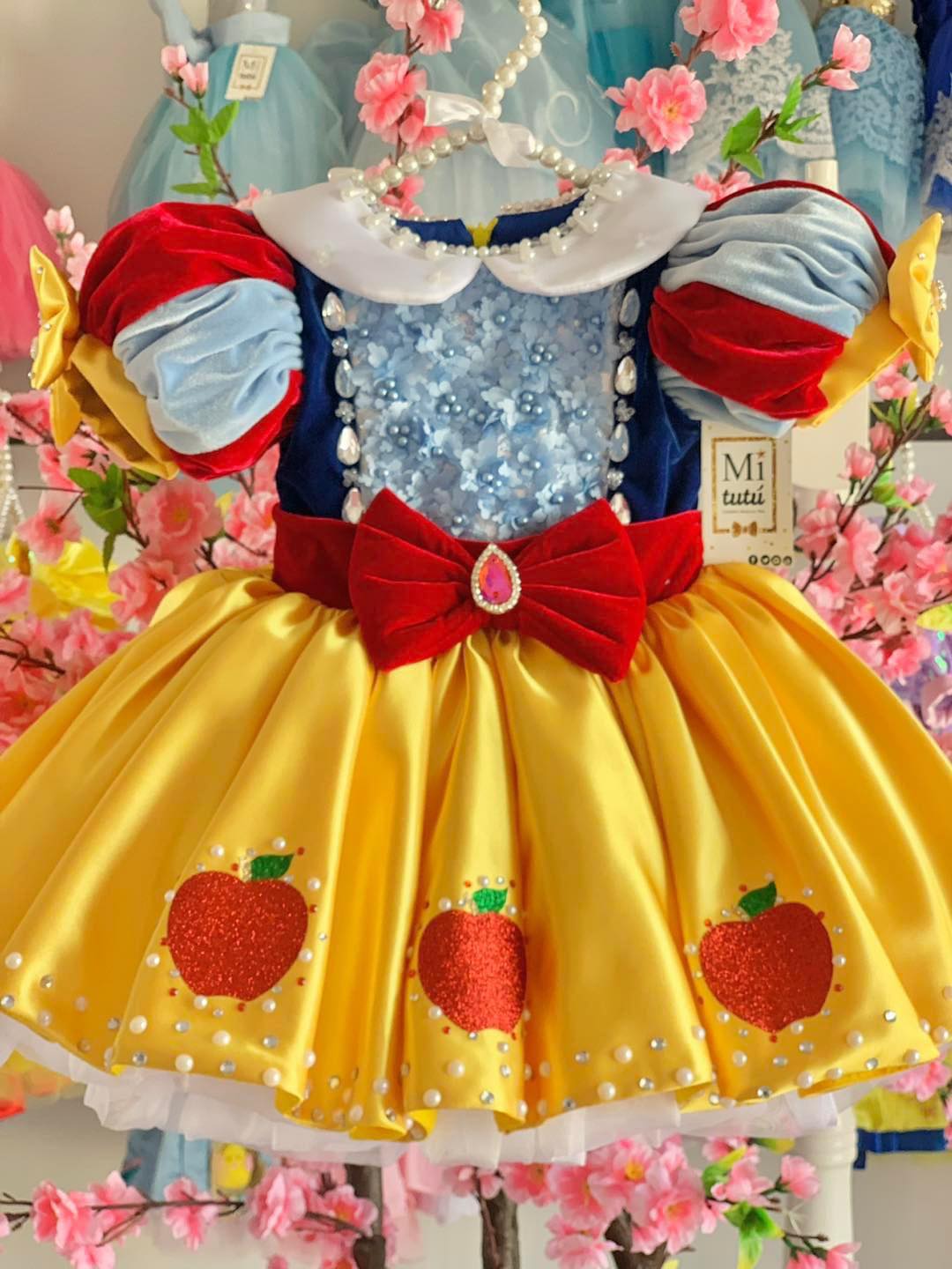 Hermoso vestidito inspirado en Blanca Nieves Manzana Real. Modelito corto y muy esponjadito, incluye pedrería bordada a mano, están diseñados para que las pequeñas princesas se sientan como en un cuento de hadas.
