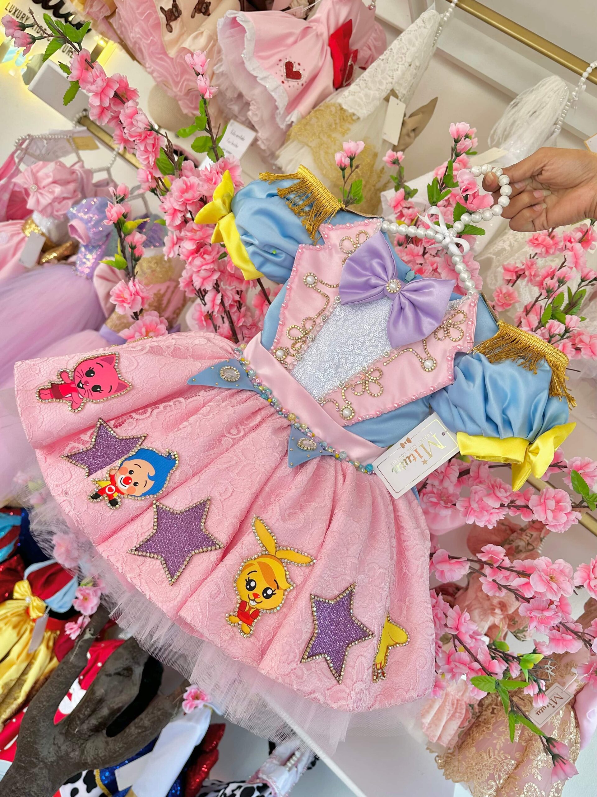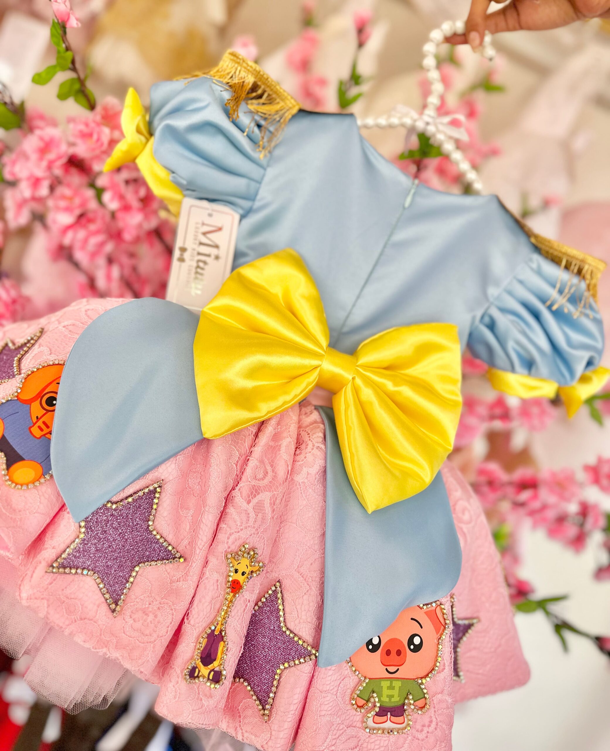 El vestido incluye a tus personajes favoritos , quienes cobran vida en colores vibrantes y cautivadores, modelo corto y muy esponjadito.