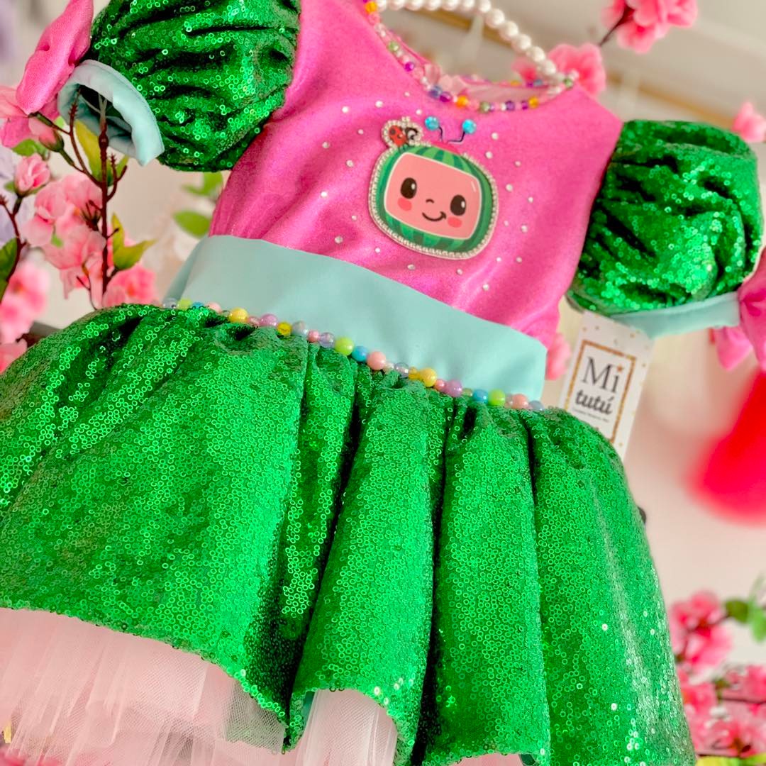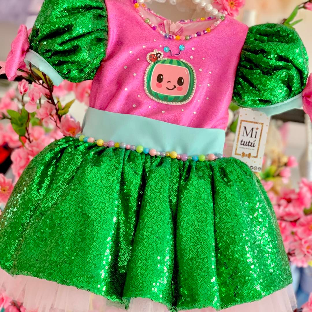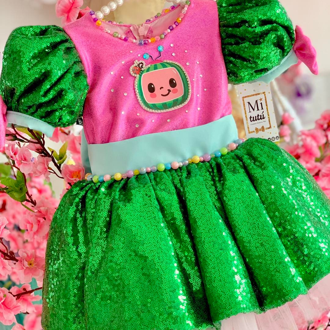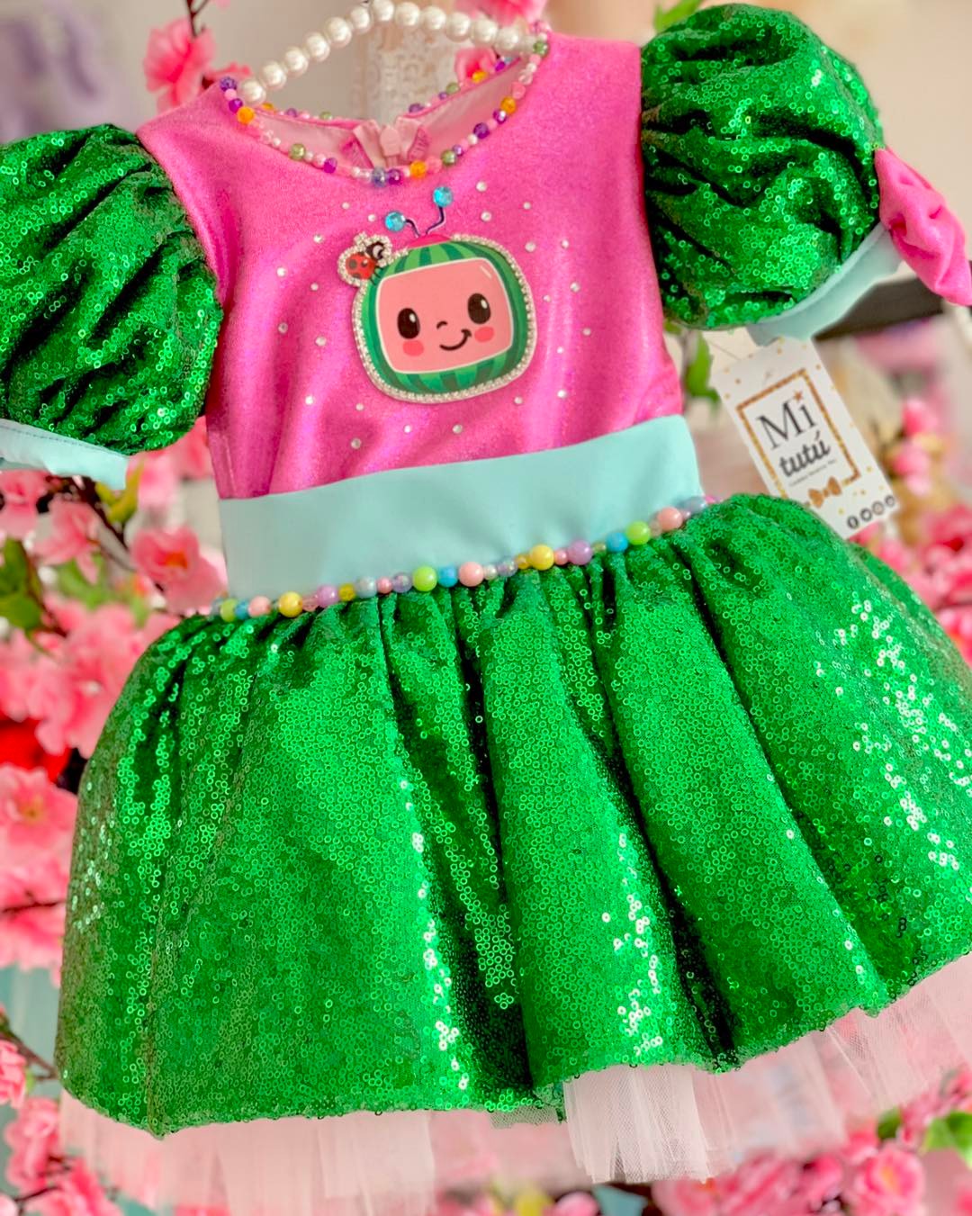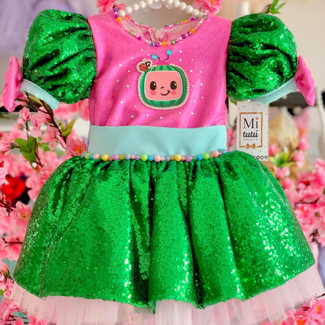 Nuestro vestido inspirado en Cocomelon es ideal para ocasiones especiales cumpleaños y sesión de fotos.