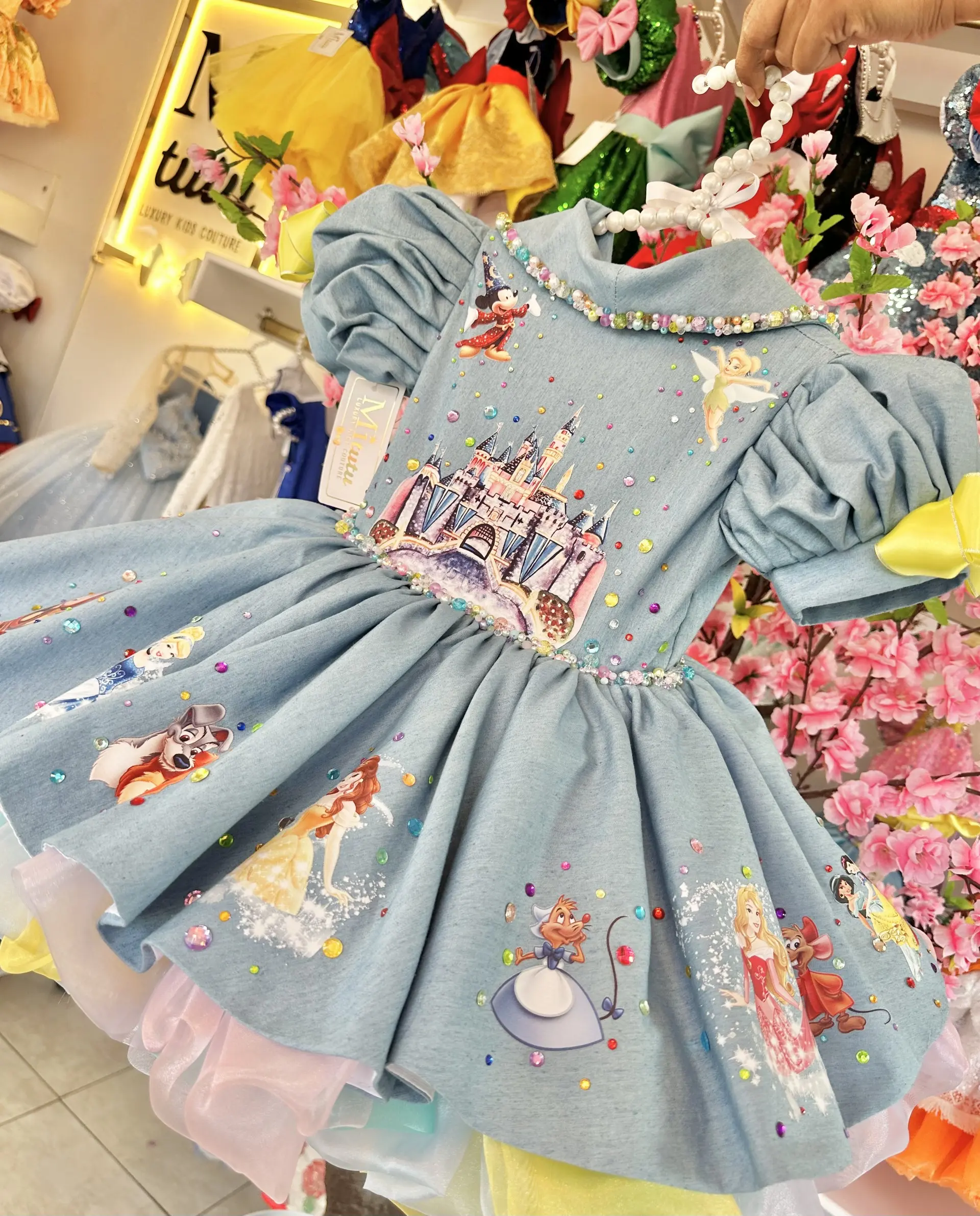 Cada vez que uses tu vestido de disney recordaras la magia que viviste en tu visita al parque de los sueños. Ideal para ocasiones especiales cumpleaños, sesión de fotos y tu visita a Disney. Se puede personalizar con tu nombre de esta manera le das un toque mucho más exclusivo. Vestido Disney