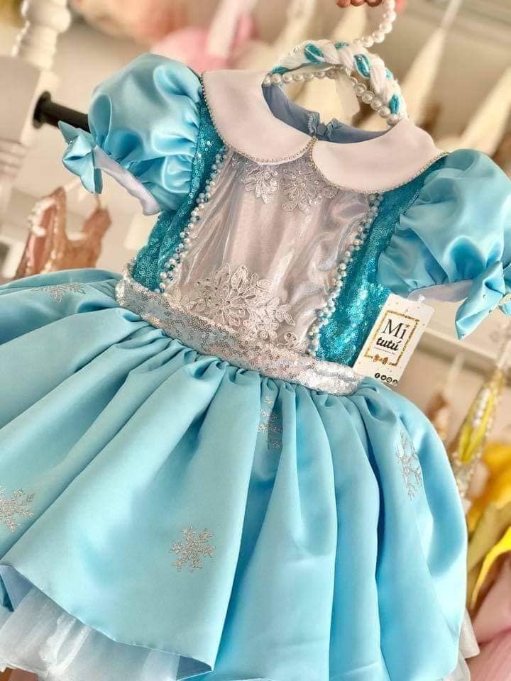 ¡Déjate llevar por la magia del invierno con nuestro adorable vestido inspirado en Frozen Diamante! Con un diseño corto y esponjadito, este modelo te hará sentir como una verdadera princesa en cualquier ocasión. ¡Prepárate para deslumbrar y vivir tu propia aventura congelada! ❄️✨¡Deja que tu pequeña brille con elegancia y dulzura en este maravilloso vestido! ✨❄️