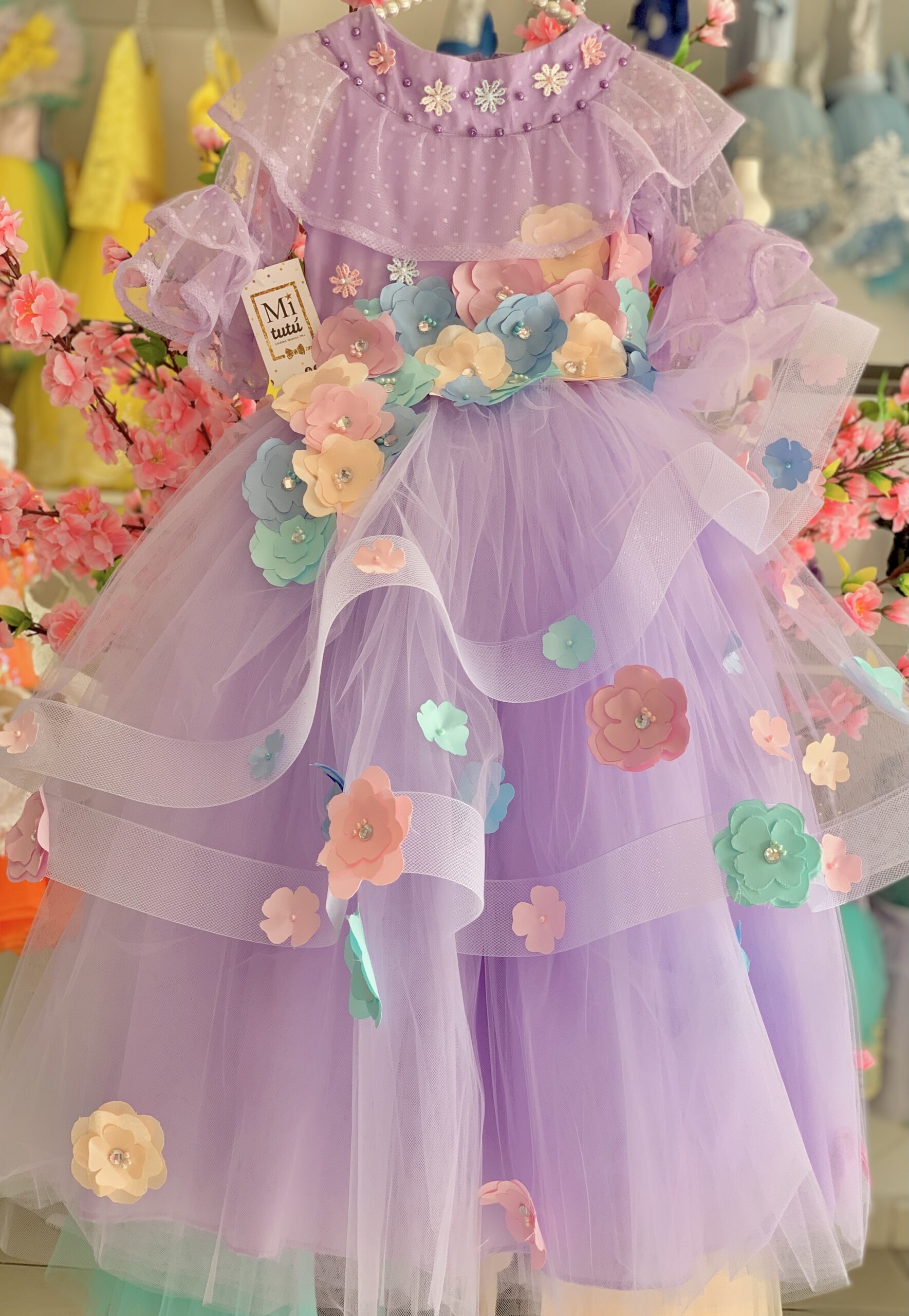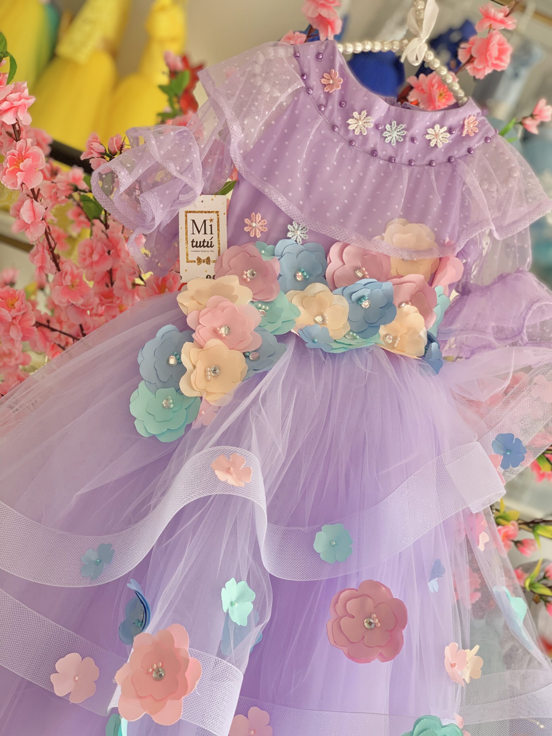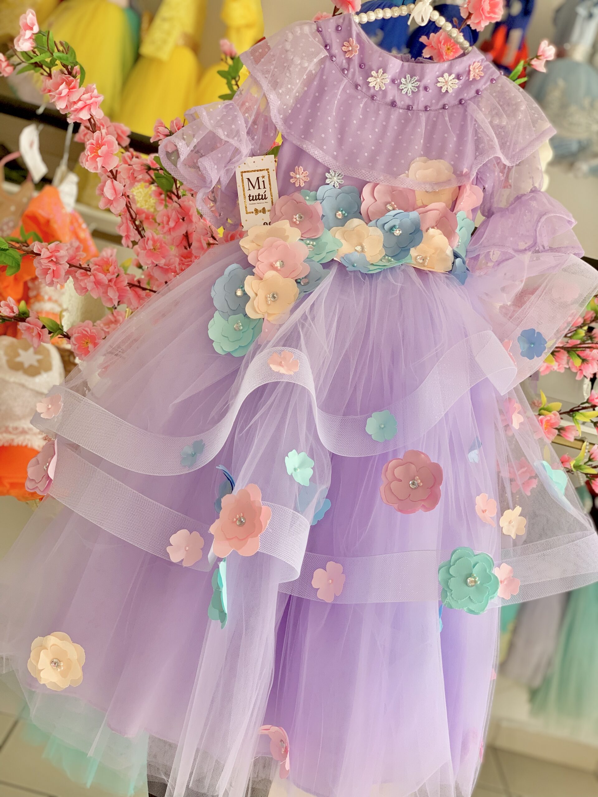 Encantador vestido inspirado en Isabela de la película “Encanto” Este vestidito, se adorna con deslumbrantes detalles que resaltan su encanto único. Su modelo largo y muy esponjadito le confiere un toque de frescura y diversión, perfecto para las pequeñas que desean bailar y disfrutar al máximo. ¡Presenciar a tu niña luciendo este vestido es presenciar la alegría hecha moda!