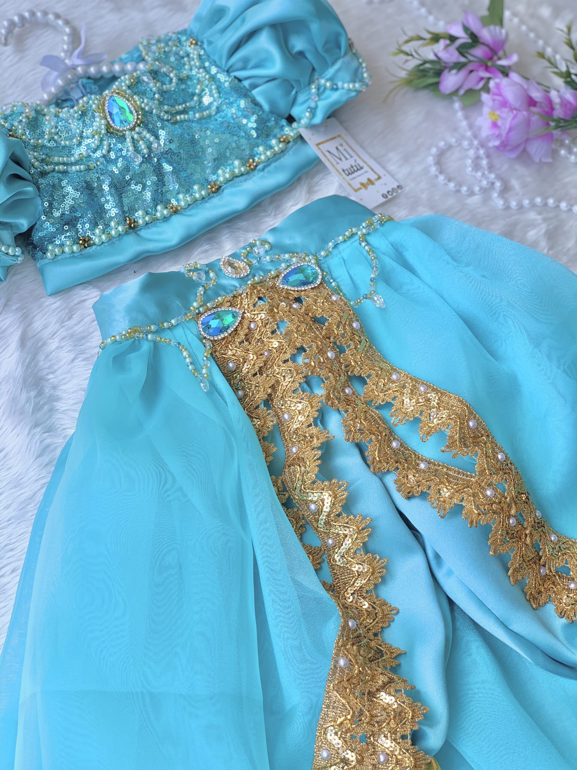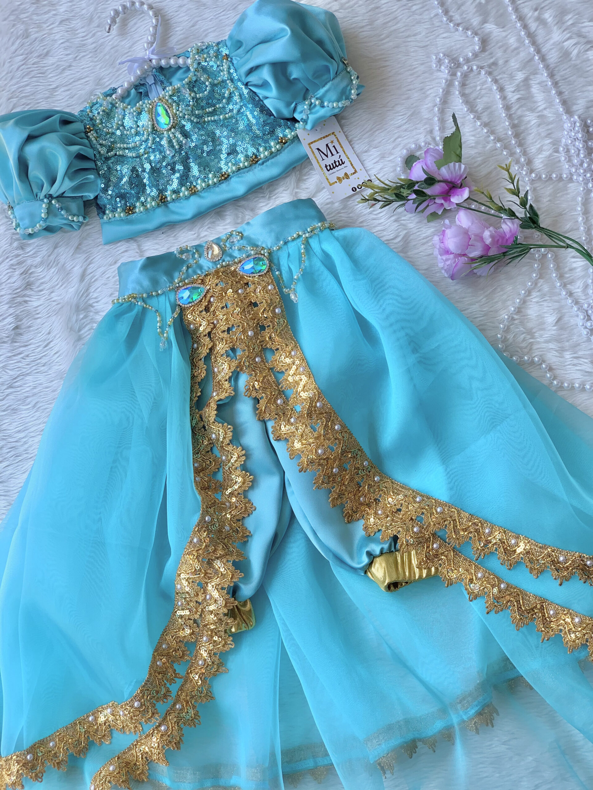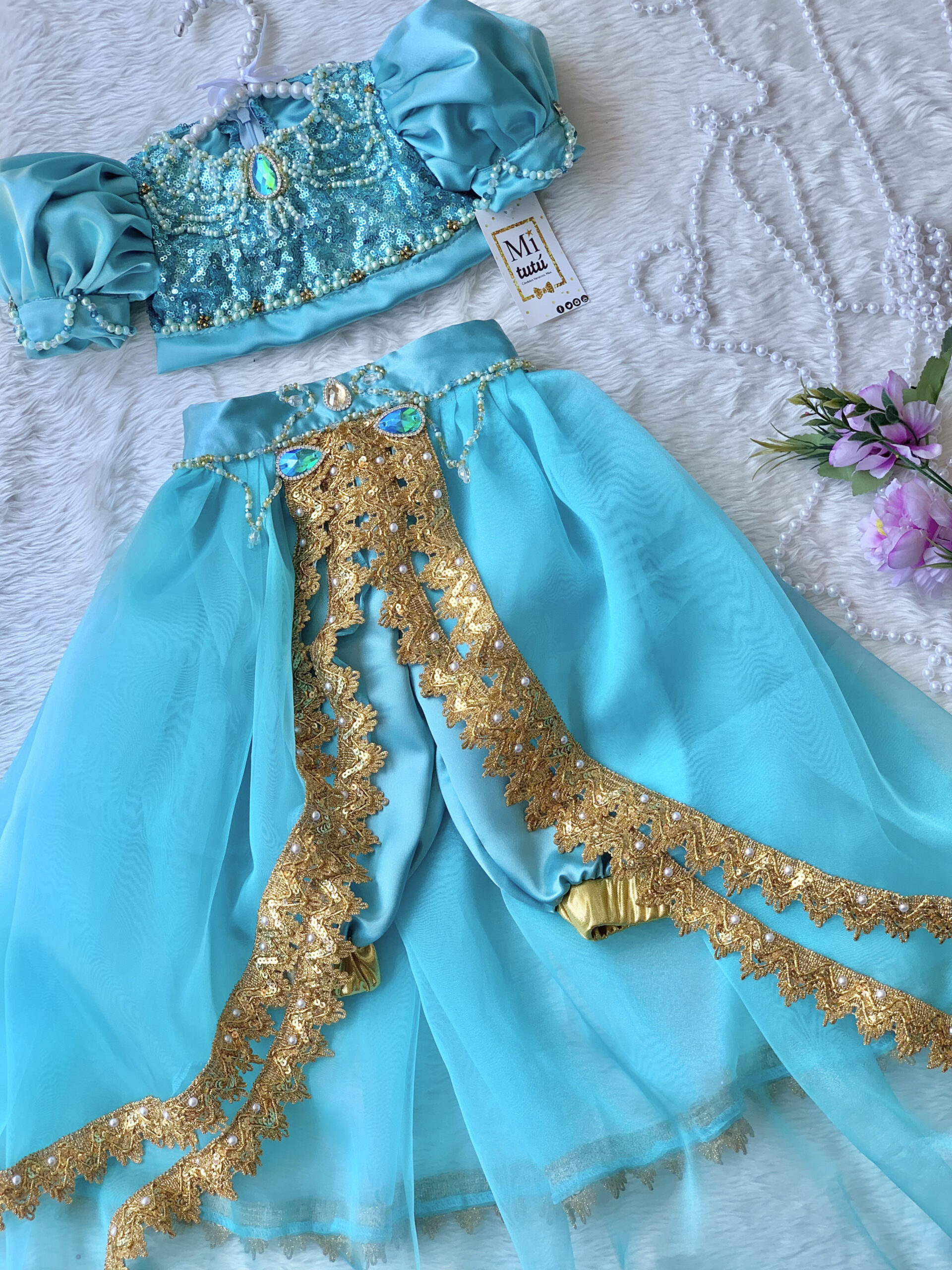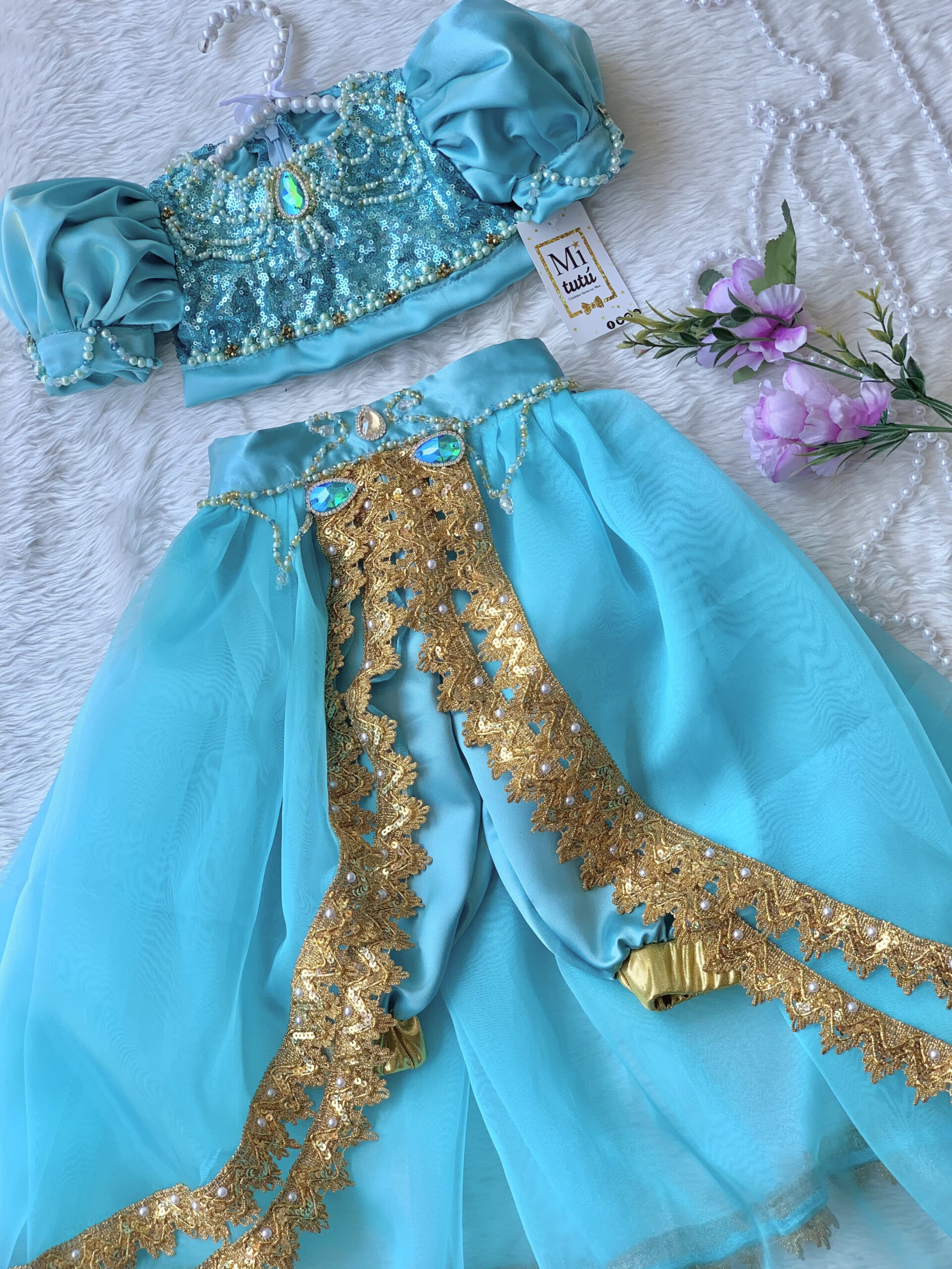 ¡Descubre la magia de ser la más hermosa de todas con nuestro adorable set inspirado en la princesa Jazmin! Este set de dos piezas, hará que tu pequeña se sienta como una verdadera princesa. ¡Déjala brillar con cada paso y llenar el mundo de dulzura y encanto!