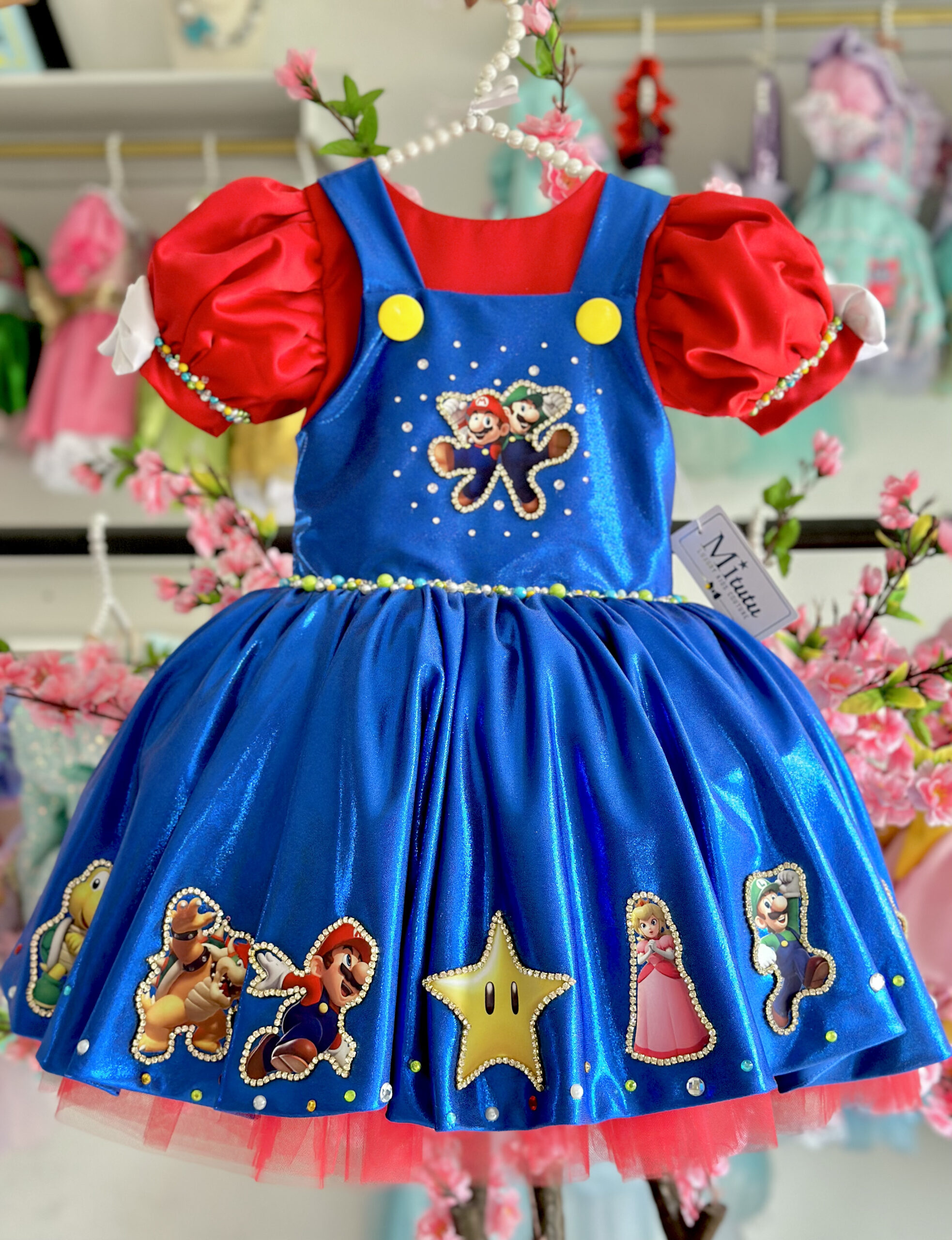 Hermoso vestido inspirado en Mario Bross. Con su diseño corto y esponjoso, cada detalle refleja la alegría y la diversión que caracterizan a este entrañable personaje y sus amigos.