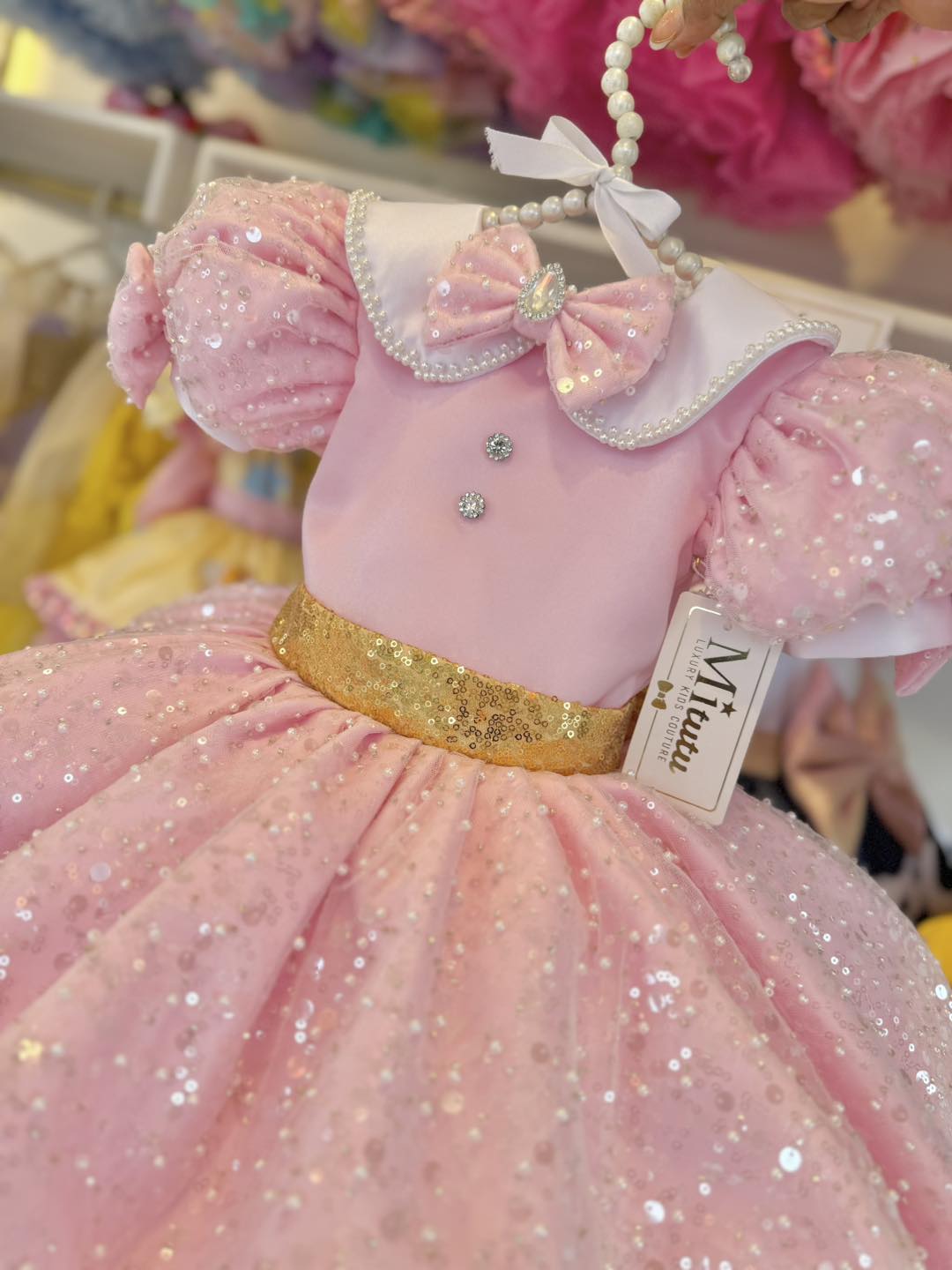 Decorado con pedrería cuidadosamente aplicada, este vestido combina elegancia y ternura, logrando un equilibrio perfecto entre fantasía y estilo. Cada pieza es elaborada con dedicación, cuidando cada detalle para ofrecer un acabado de alta calidad.