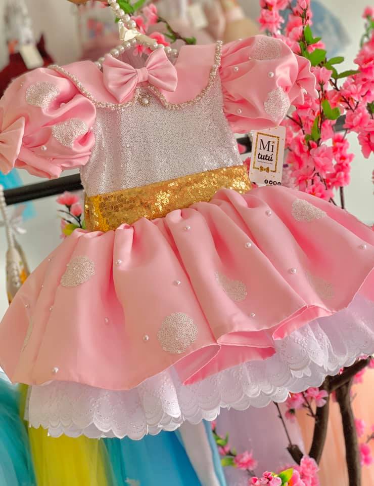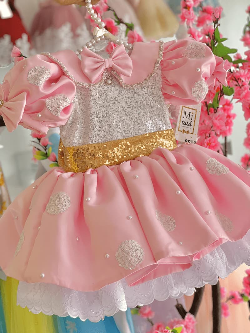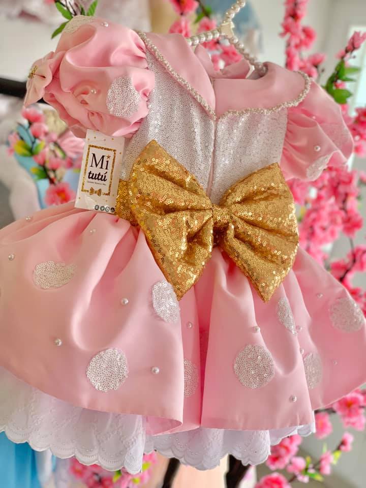 Adorable vestido inspirado en Minnie , personajes icónicos de Mickey Mouse. Confeccionado con esmero y detalles bordados a mano. Su modelo corto a la rodilla añade un toque de elegancia juguetona, color rosa bebe perfecto para que las pequeñas brillen en cualquier celebración. ¡Deja que tus niñas se sumerjan en la alegría con este vestido que incluye a sus personajes favoritos, haciendo cada momento especial e inolvidable!Incluye diadema de orejitas minnie.