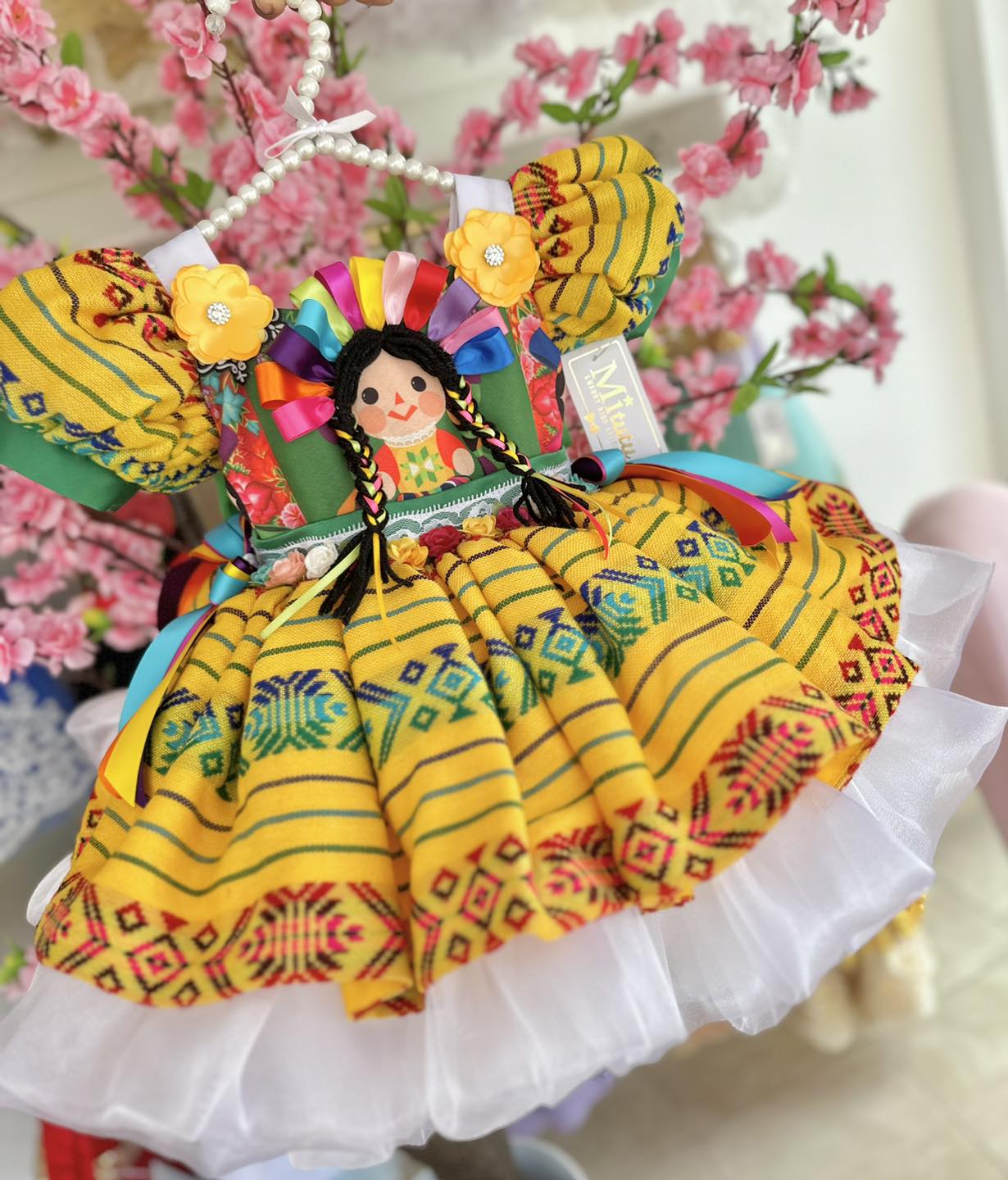 Hermoso vestido mexicano “Muñequita”, confeccionada con cariño y adornada con detalles hechos a mano. Su modelo corto y esponjoso no solo resalta la elegancia, sino que también rinde homenaje a la rica tradición artesanal de México. Este vestido es una danza de colores y texturas, llevando consigo la esencia vibrante y cautivadora de la cultura mexicana, convirtiéndose así en un tesoro de belleza y gracia.