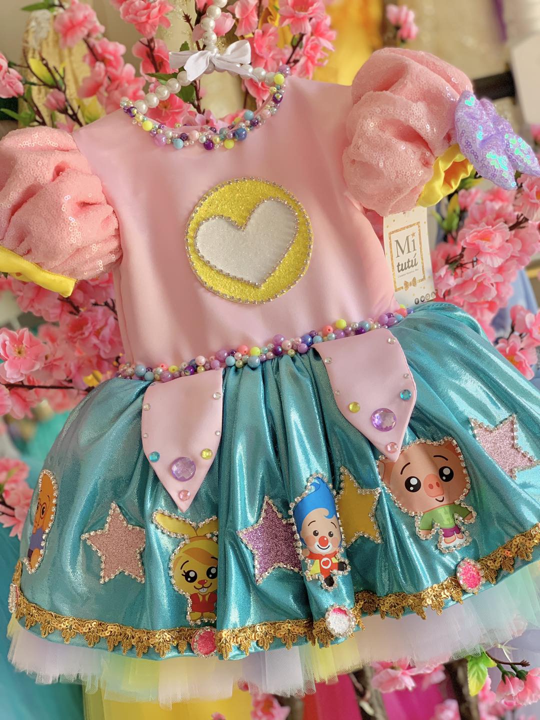 El vestido incluye a tus personajes favoritos , quienes cobran vida en colores vibrantes y cautivadores, modelo corto y muy esponjadito.