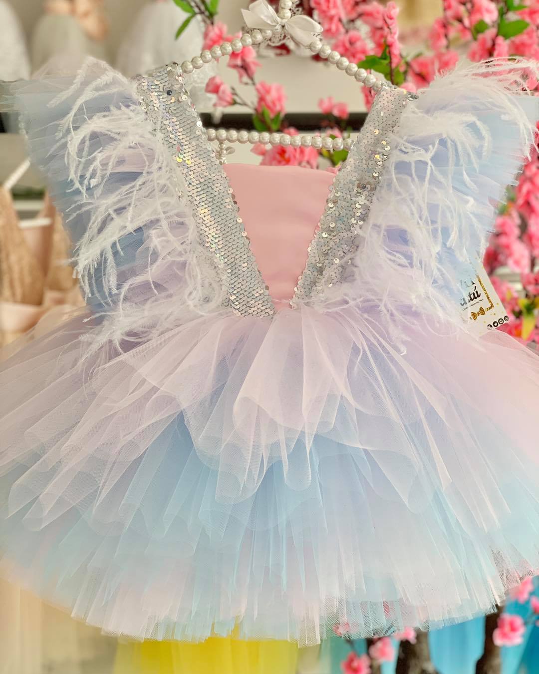 Hermoso vestido Plumitas, con su diseño corto a la rodilla y su esponjoso vuelo, ¡hará que todos se sientan como en un cuento de hadas! ✨Modelo ideal para ocasiones especiales cumpleaños y sesión de fotos.