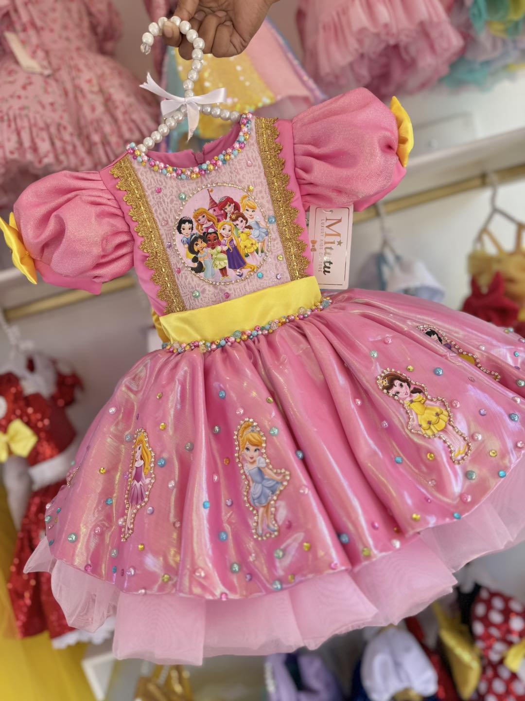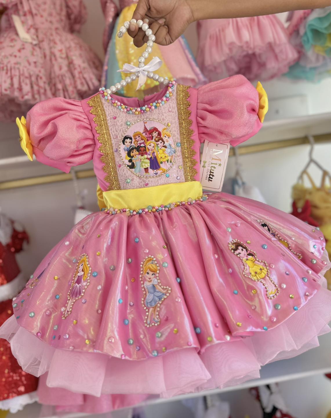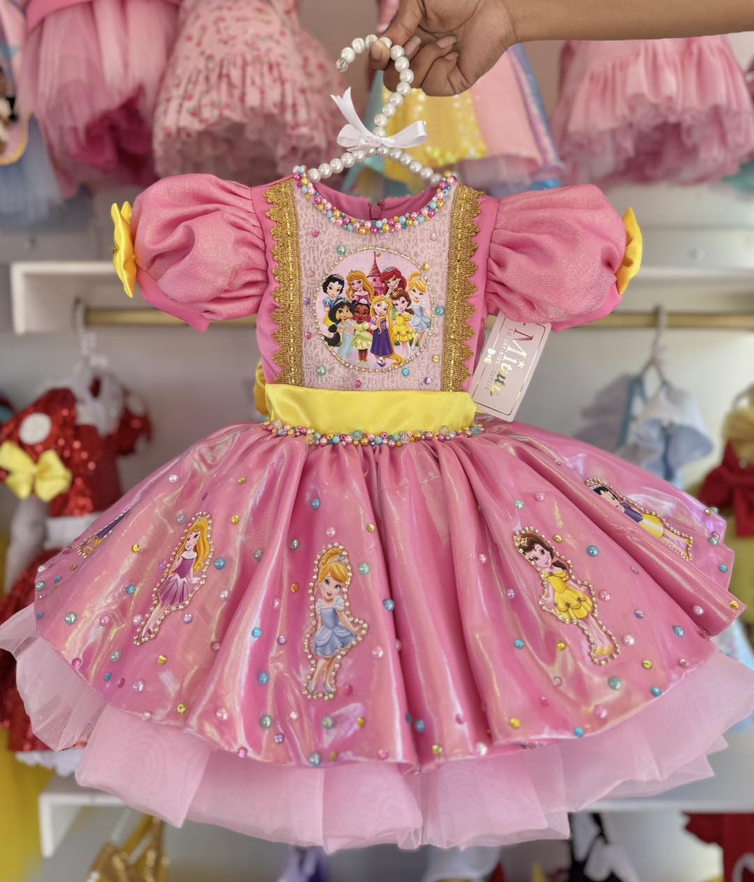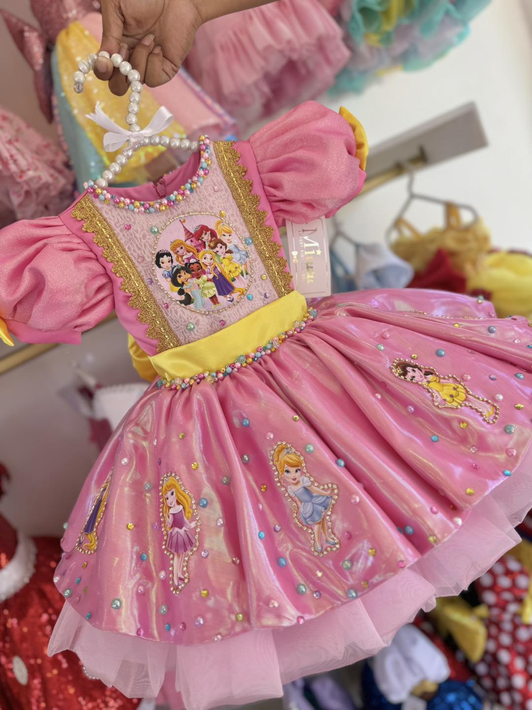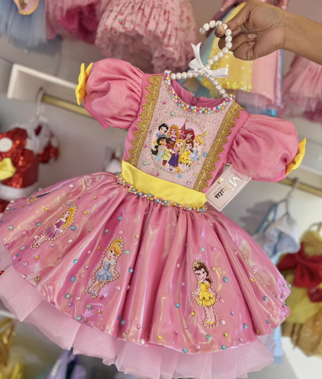 Sumérgete en la magia con nuestro encantador vestido Princesas Disney, ideal para cumpleaños y sesión defotos, un hermoso vestido confeccionada a mano que captura la esencia mágica de princesas Disney. Con su diseño corto a la rodilla con colita y su esponjoso vuelo, ¡hará que todos se sientan como en un cuento de hadas! ✨Ideal para ocasiones especiales cumpleaños y sesión de fotos.