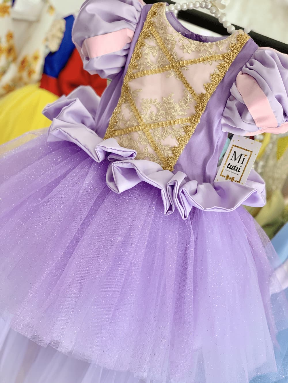Hermoso vestidito inspirado en Rapunzel. ¡Viste a tu pequeña princesa como la más dulce de todas con nuestro encantador vestido inspirado en Rapunzel! Con su diseño corto a la rodilla con colita y su esponjoso vuelo, ¡hará que todos se sientan como en un cuento de hadas! ✨Nuestro vestido inspirado en Rapunzel es el Ideal para ocasiones especiales cumpleaños y sesión de fotos.