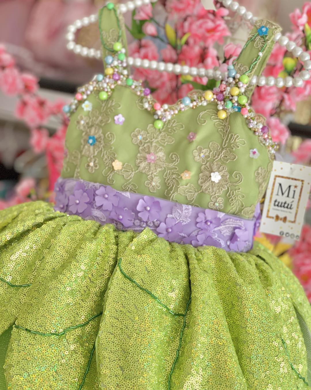 Encantador vestido Tinkerbell. Este vestidito, confeccionado con esmero y detalles bordados a mano, se adorna con deslumbrantes lentejuelas que resaltan su encanto único. Su modelo corto a la rodilla y muy esponjadito le confiere un toque de frescura y diversión, perfecto para las pequeñas que desean bailar y disfrutar al máximo. ¡Presenciar a tu niña luciendo este vestido es presenciar la alegría hecha moda!