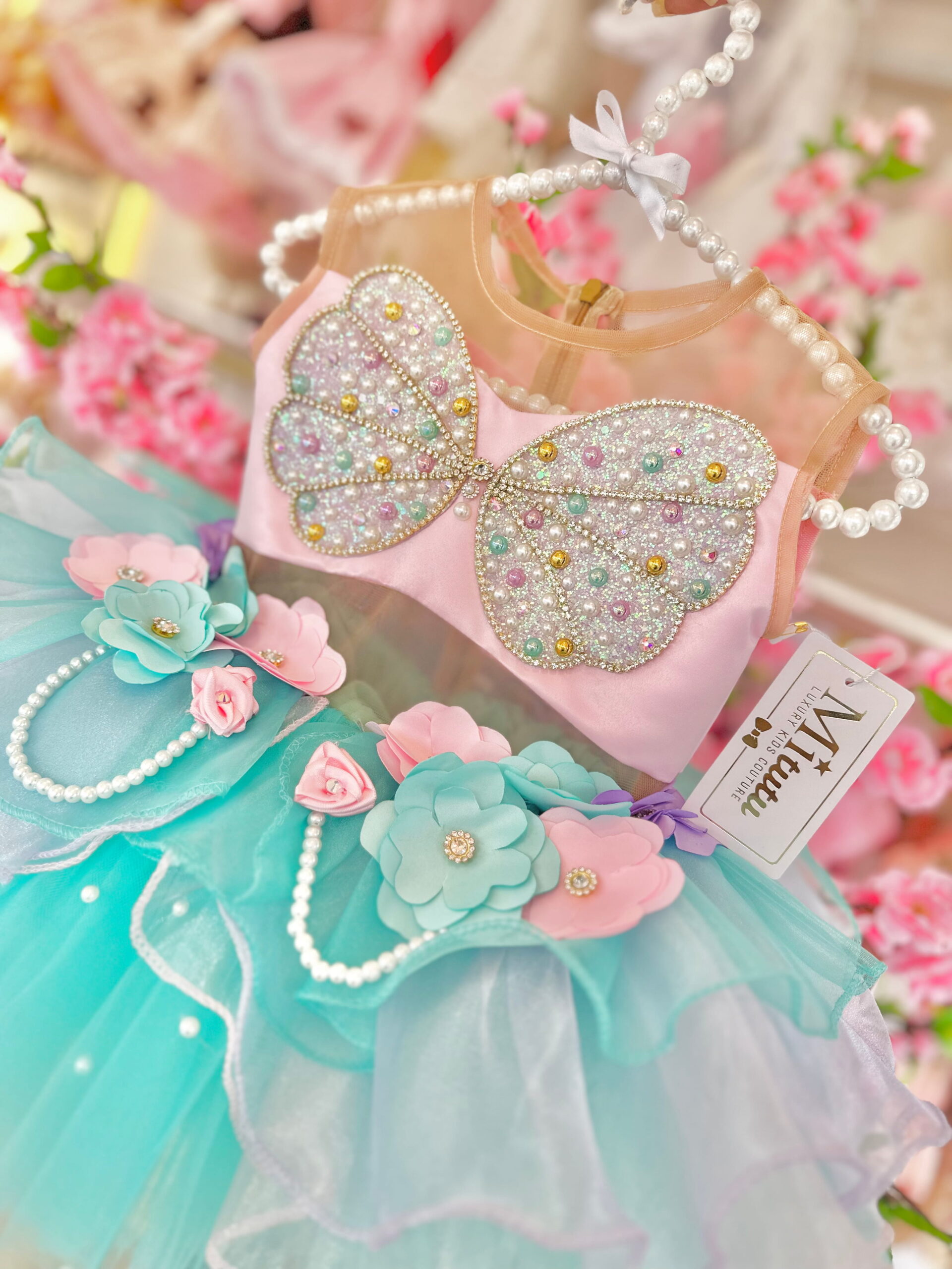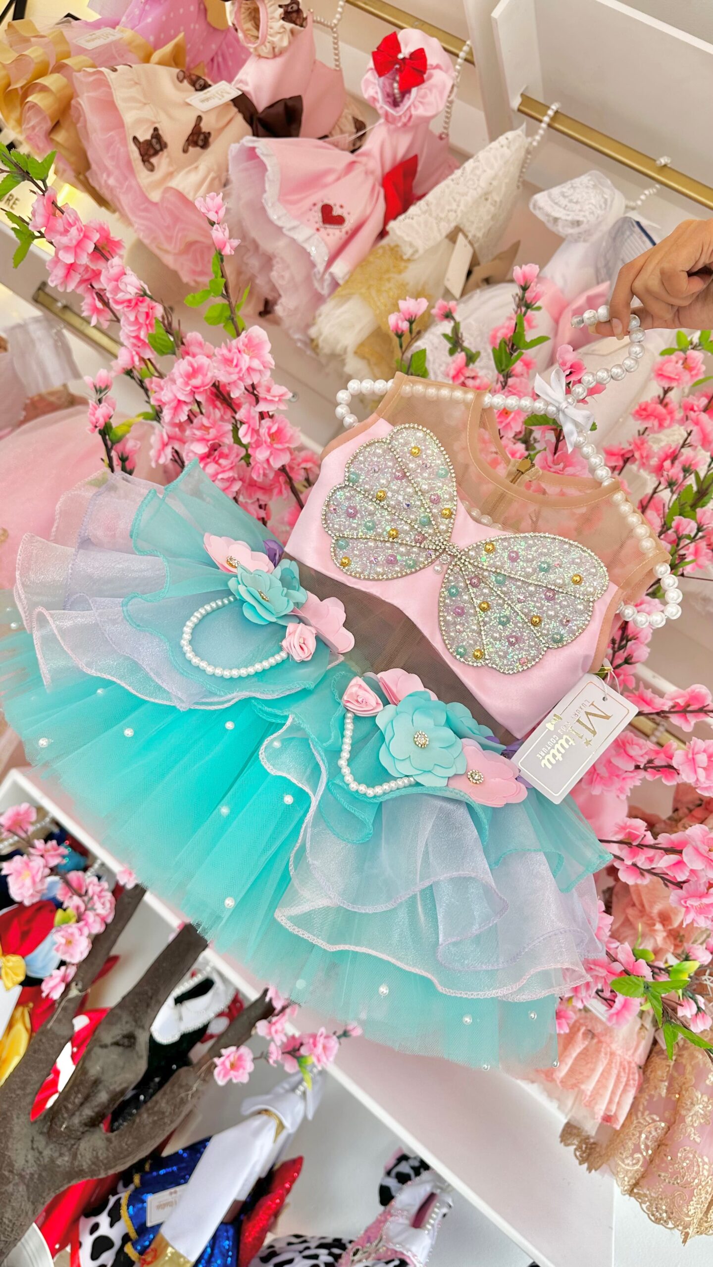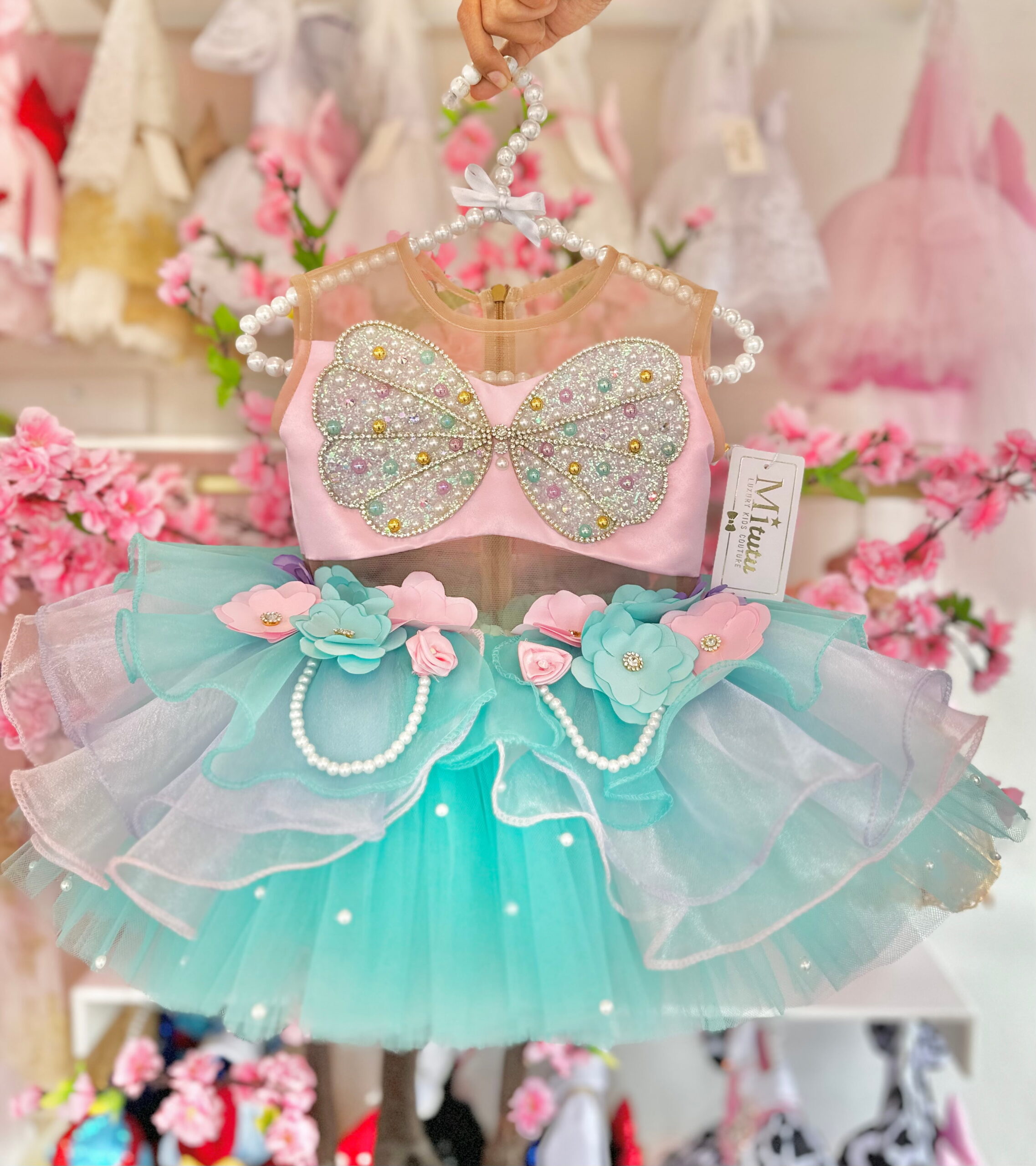 Imagina sumergirte en la magia del océano con nuestro encantador vestido de fiesta infantil, inspirado en la fascinante Sirenita. Este deslumbrante vestidito, meticulosamente confeccionado a mano, cautiva con detalles bordados que rinden homenaje a las maravillas del mar, modelito corto y muy esponjadito.